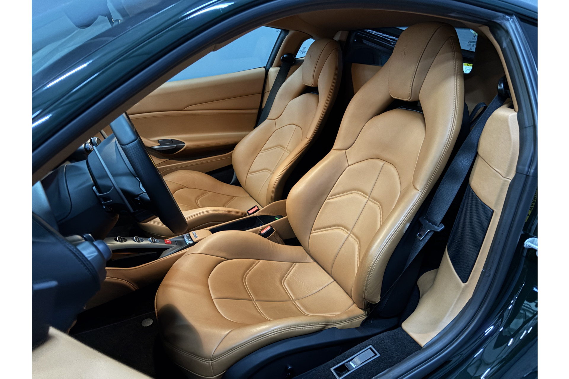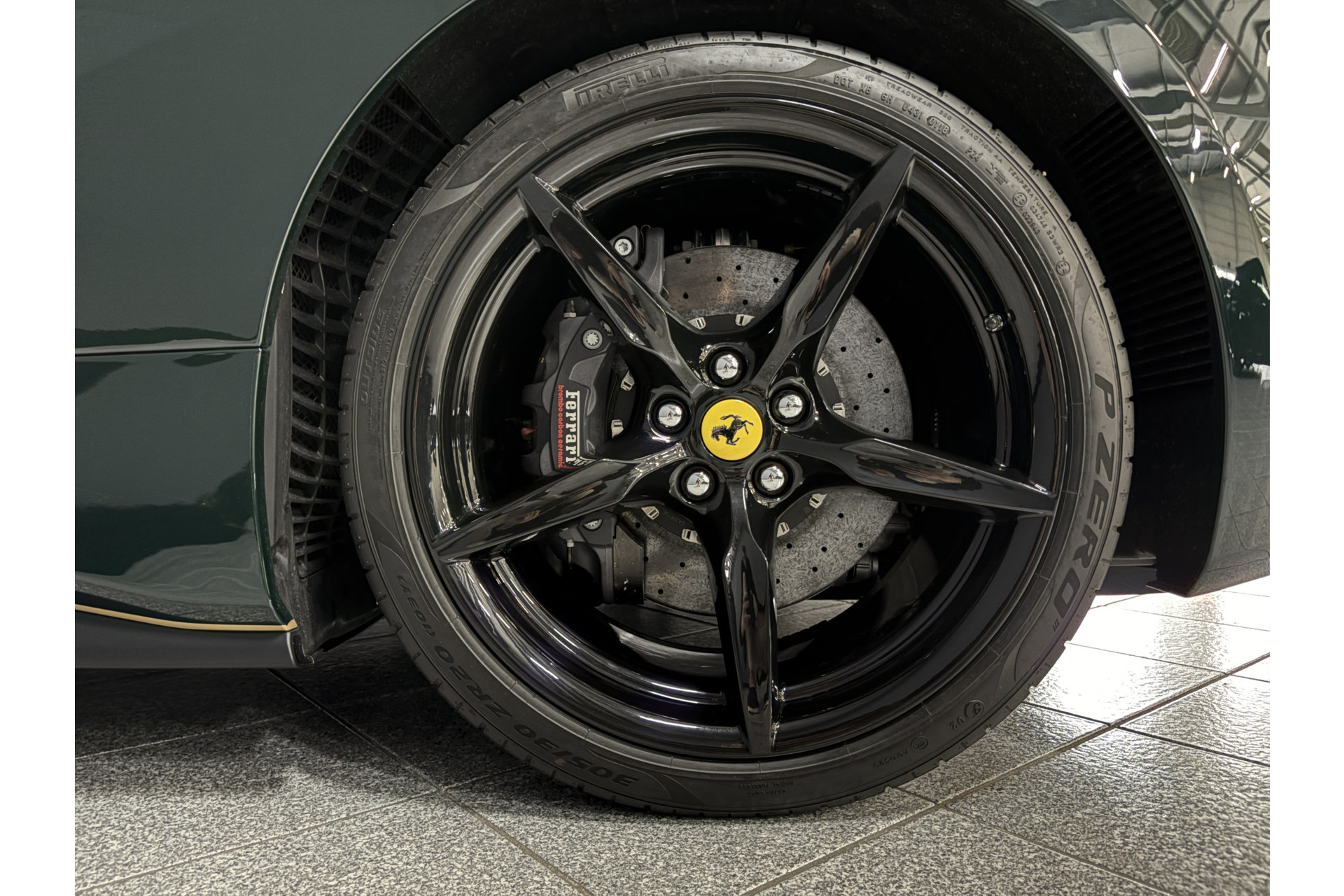 Uitgevoerd in de traditionele optiekleur "Verde British Racing 611" met hoogglans zwarte velgen en Cuoio lederen interieur een prachtige verschijning.