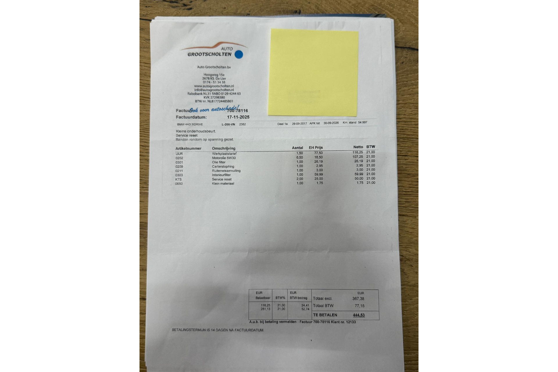 Laatste onderhoud is uitgevoerd op 17.11.2025 met 54.997 km